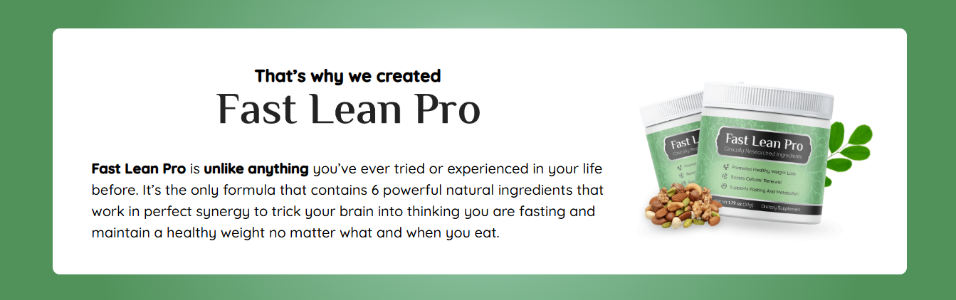 • A dietary supplement called Fast Lean Pro aids in promoting weight management.